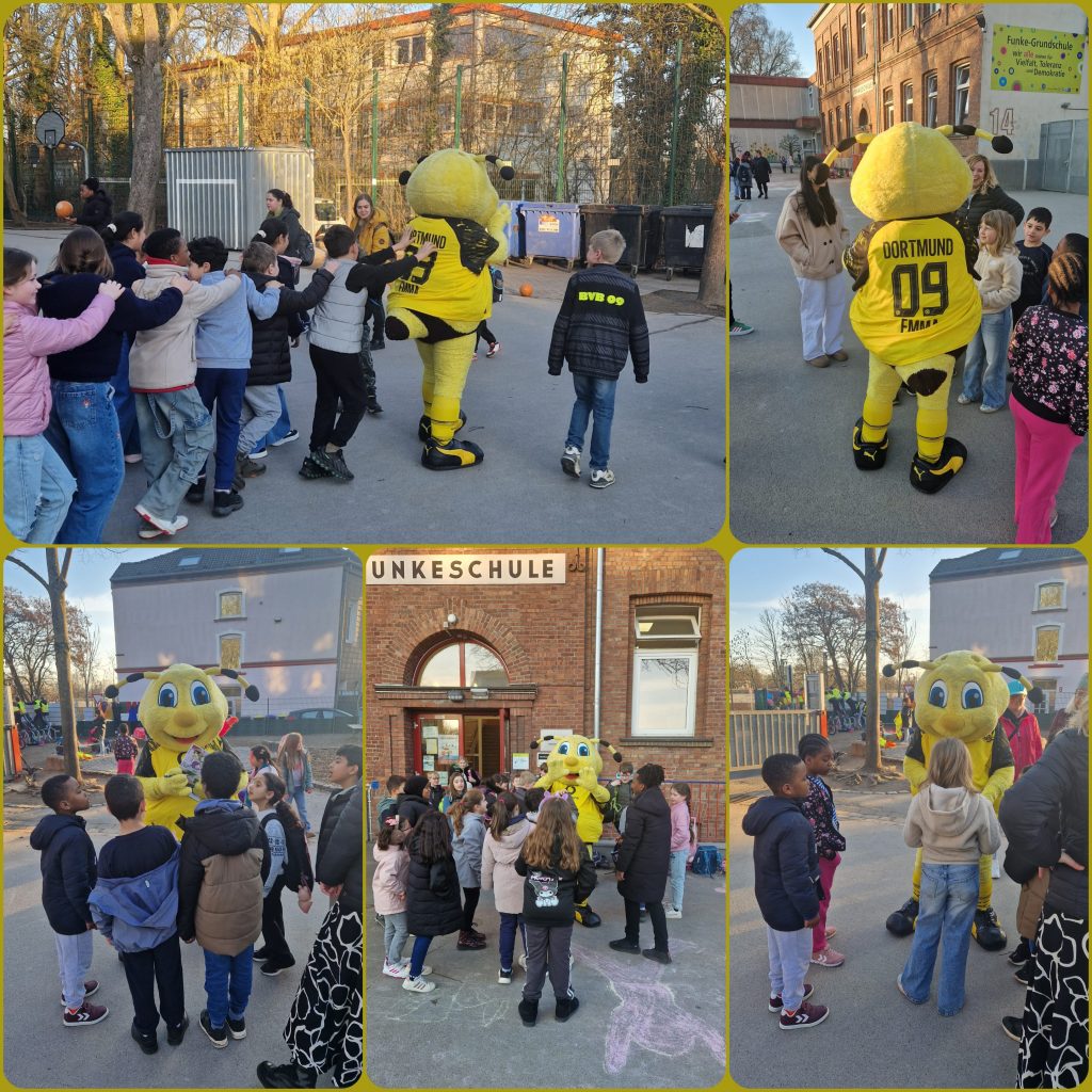 Am Dienstag, den 03.03.2026, durfte die Funke-Grundschule einen ganz besonderen Überraschungsgast begrüßen: Das BVB-Maskottchen Emma schaute bei uns vorbei.