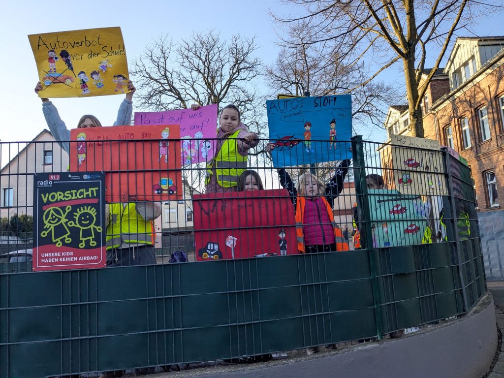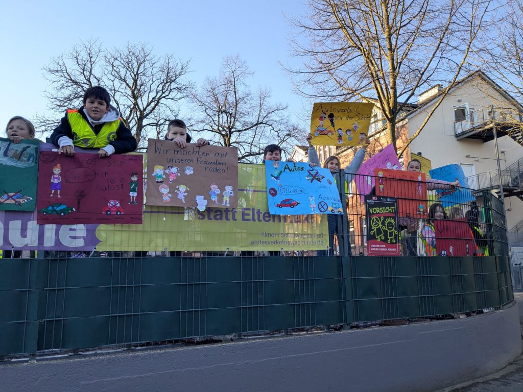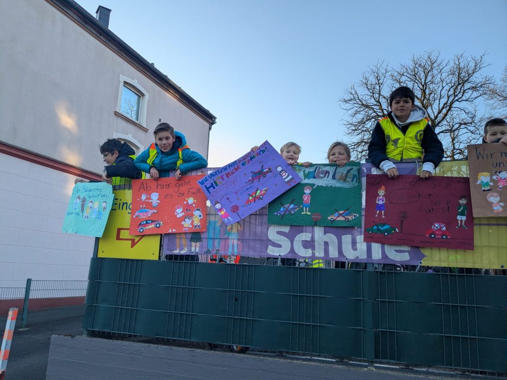 Vom 23.02.2026 bis zum 06.03.2026 fand an unserer Grundschule erneut eine Verkehrsaktion statt. Dabei machten die Kinder mit Warnwesten und selbst gestalteten Plakaten bei einer täglichen Kinderdemonstration darauf aufmerksam, dass vor der Schule ein Halteverbot für Autos gilt. Kinder, die ihren Schulweg zu Fuß zurückgelegt haben, konnten dabei Punkte sammeln. Wir bedanken uns herzlich bei allen Eltern und Kindern, die diese Aktion unterstützt haben.